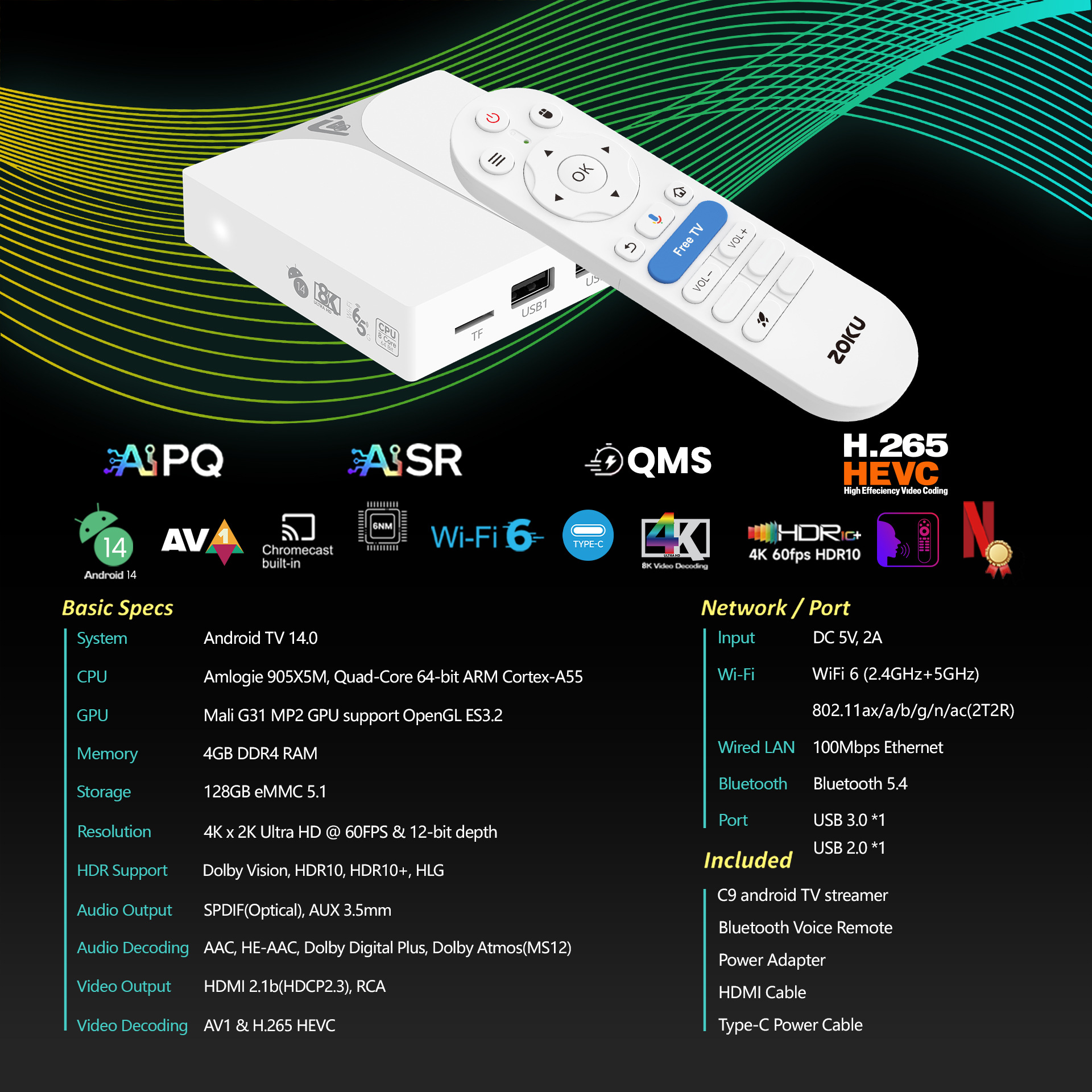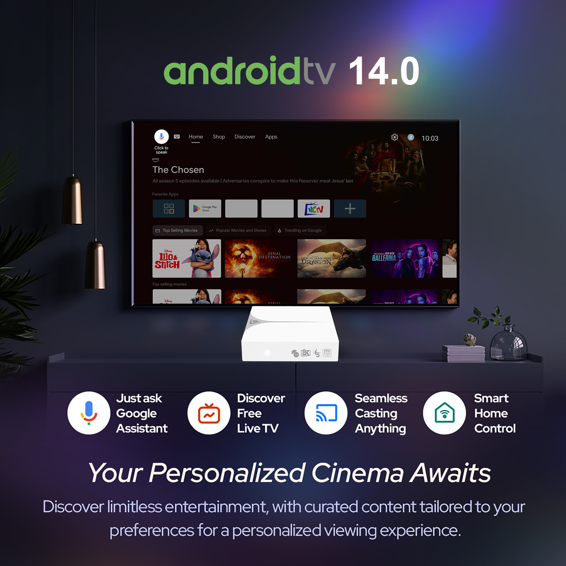 Massive 128GB Storage Capacity: Download and store all your favorite apps, games, and media with generous 128GB of internal storage—far more than standard TV boxes, giving you the freedom to customize your entertainment without worrying about space